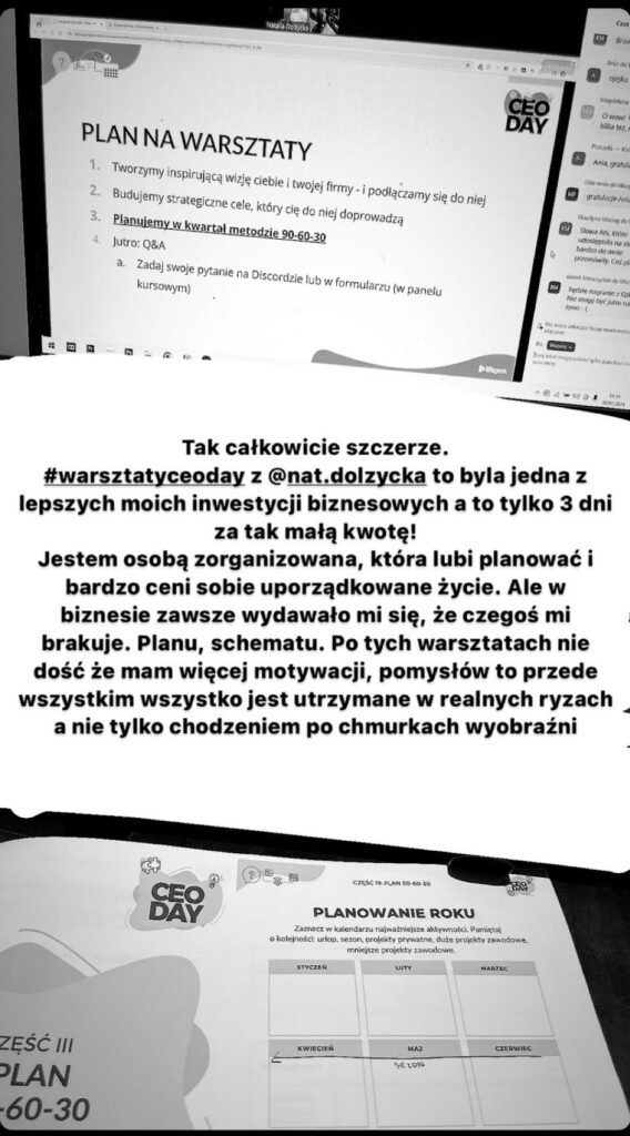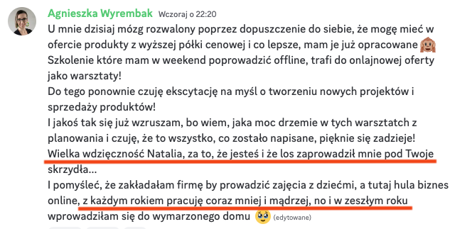 Ustalisz co w biznesie daje Ci fun i pieniądze. Znajdziesz energię do działania, którą pokocha Twoja rodzina i… klienci. Zrozumiesz, co trzeba zrobić i kim się stać, by osiągnąć wyniki, które zaskoczą nawet Ciebie samą.